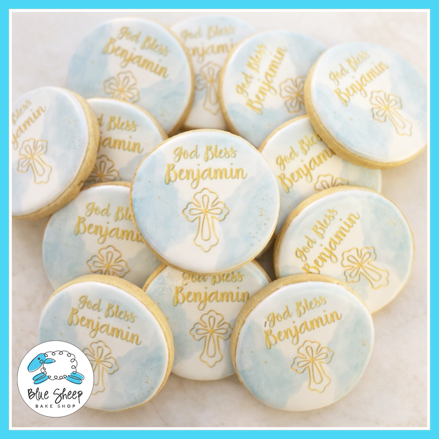 Personalized God Bless Printed Cookie Favors for Baptism & Communion