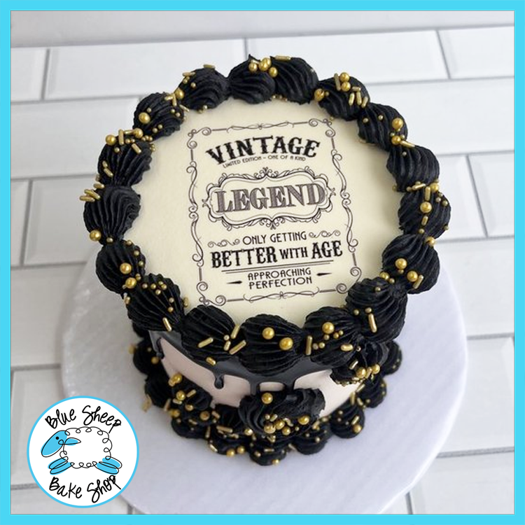 Embrace timeless elegance with our Vintage Birthday Cake. This exquisite cake is tailored for those celebrating a milestone and is a delightful tribute to all who believe in aging like fine wine. Each layer of this sumptuous treat is crafted with the finest ingredients, ensuring a taste that’s only getting better with age. Adorned with sophisticated black and gold piping and sprinkles, this cake exudes the charm of a classic vintage label, making it a show-stopping centerpiece for any birthday celebration. Indulge in the perfect blend of tradition and taste with this one-of-a-kind birthday masterpiece.