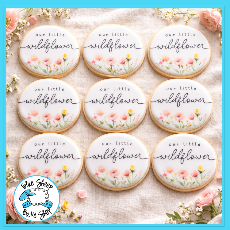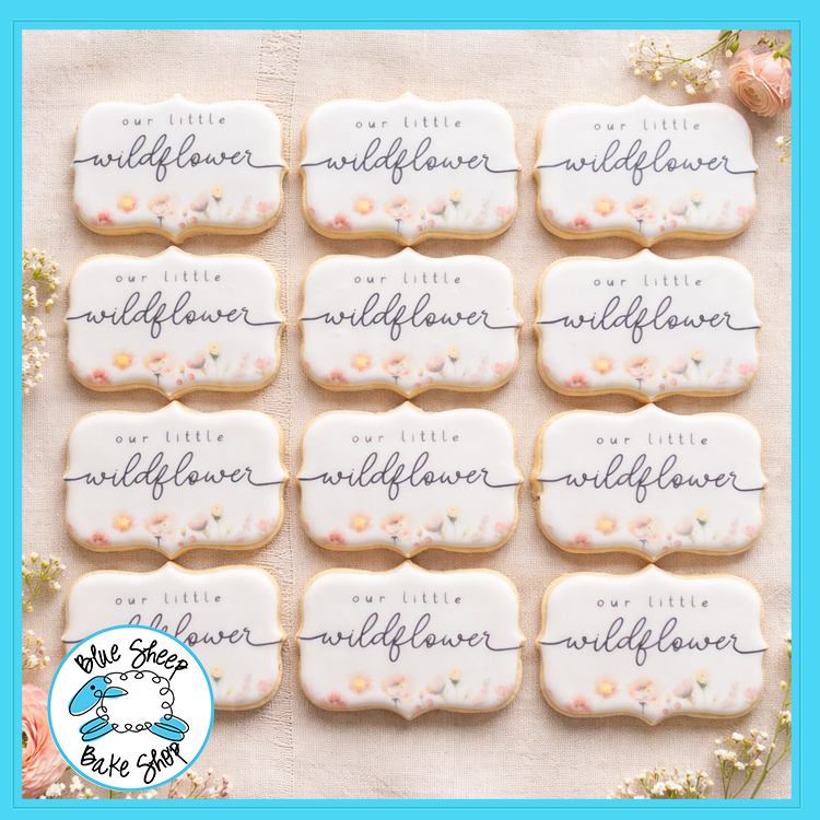 Celebrate the arrival of your little wildflower with our beautifully crafted Wildflower Baby Shower Cookie Favors! Each cookie is elegantly decorated with delicate floral details and the phrase "Our Little Wildflower," making them the perfect addition to any nature-inspired baby shower or springtime event. Made with a buttery, soft sugar cookie base and topped with custom royal icing designs, these favors not only look stunning but taste delightful too. Personalize these cookies to match your event's theme and make your celebration even sweeter. Order your wildflower-themed baby shower cookie favors today!